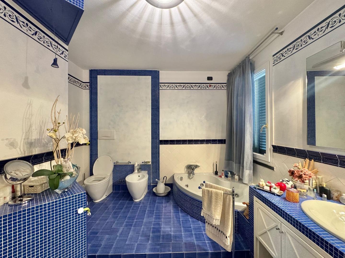 Gli ambienti sono luminosi e ben aerati, tipici delle ville signorili, con una zona giorno spaziosa costituita da cucina abitabile con accesso ad AMPIA TERRAZZA di circa 50 mq e una zona notte composta da due camere matrimoniali di ampie metrature, una camera singola e due bagni.