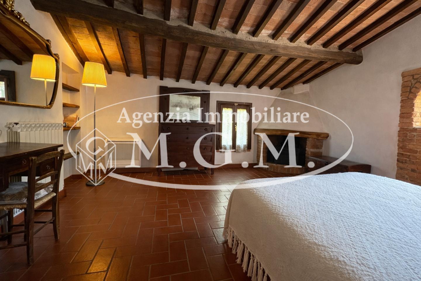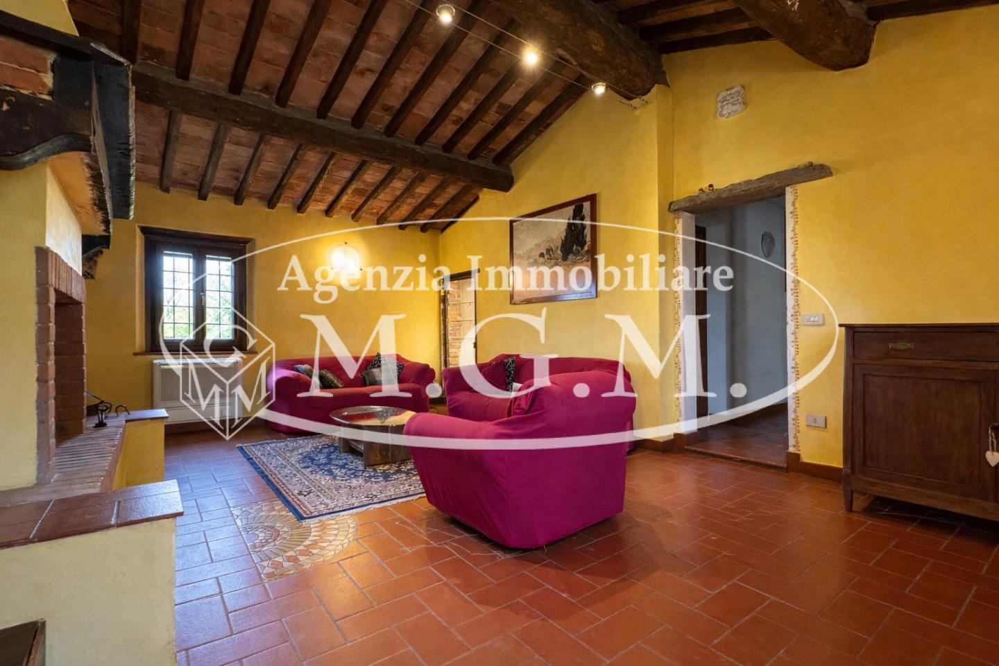 Pontedera - Montecastello - in splendida zona collinare riservata e immersa nel verde, al primo ed ultimo piano di un cascinale bifamiliare ben curato, stupenda abitazione dal fascino rustico tipico delle case di campagna. Dal bel giardino piantumato di proprietà esclusiva, mediante l'ingresso indipendente al piano terra, si sale all'abitazione che si sviluppa per tutta l'ampiezza del fabbricato e si viene accolti da un bel salone con camino oltre cucina abitabile con lato cottura separato e finestrato; l'ingresso nella zona notte disimpegna tre camere di cui una con caminetto e i doppi servizi entrambi con finestra. I soffitti a travi e mezzane, il pavimento in cotto, i dettagli in pietra e i mattoni a vista esaltano la tipicità dell'abitazione che gode anche di moderni infissi con doppi vetri e portoncino blindato, tutti protetti da ringhiere concepite con gusto. Possibilità di acquistare ulteriore un terreno in più di circa 3 ettari adiacente l' abitazione. Dimora perfetta per chi ama vivere grandi spazi conviviali anche all'aperto in serenità, senza rinunciare alla prossimità dei comodi servizi offerti dal centro e dall'ottima viabilità di Pontedera. Disponibilità immediata!!!!!!!!!!