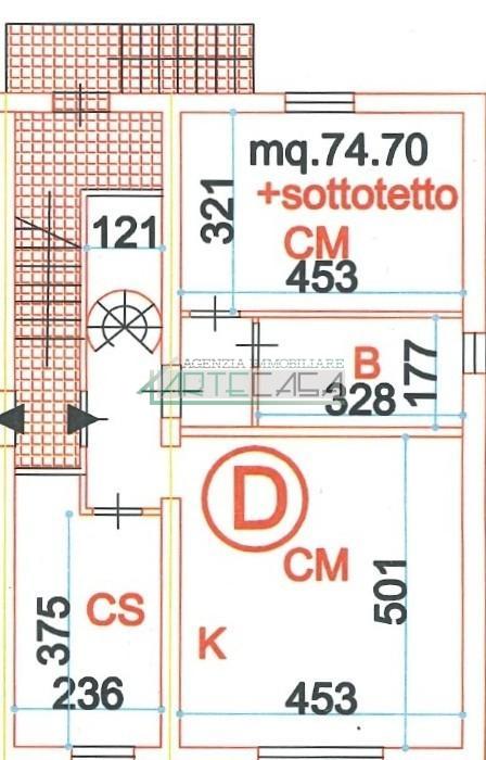 Da scala esterna si raggiunge l'appartamento che si compone di: ingresso in disimpegno con scala a chiocciola per l'accesso al vano sottotetto, a seguire luminosa zona soggiorno con angolo cottura, una camera matrimoniale, una cameretta e bagno con finestra.