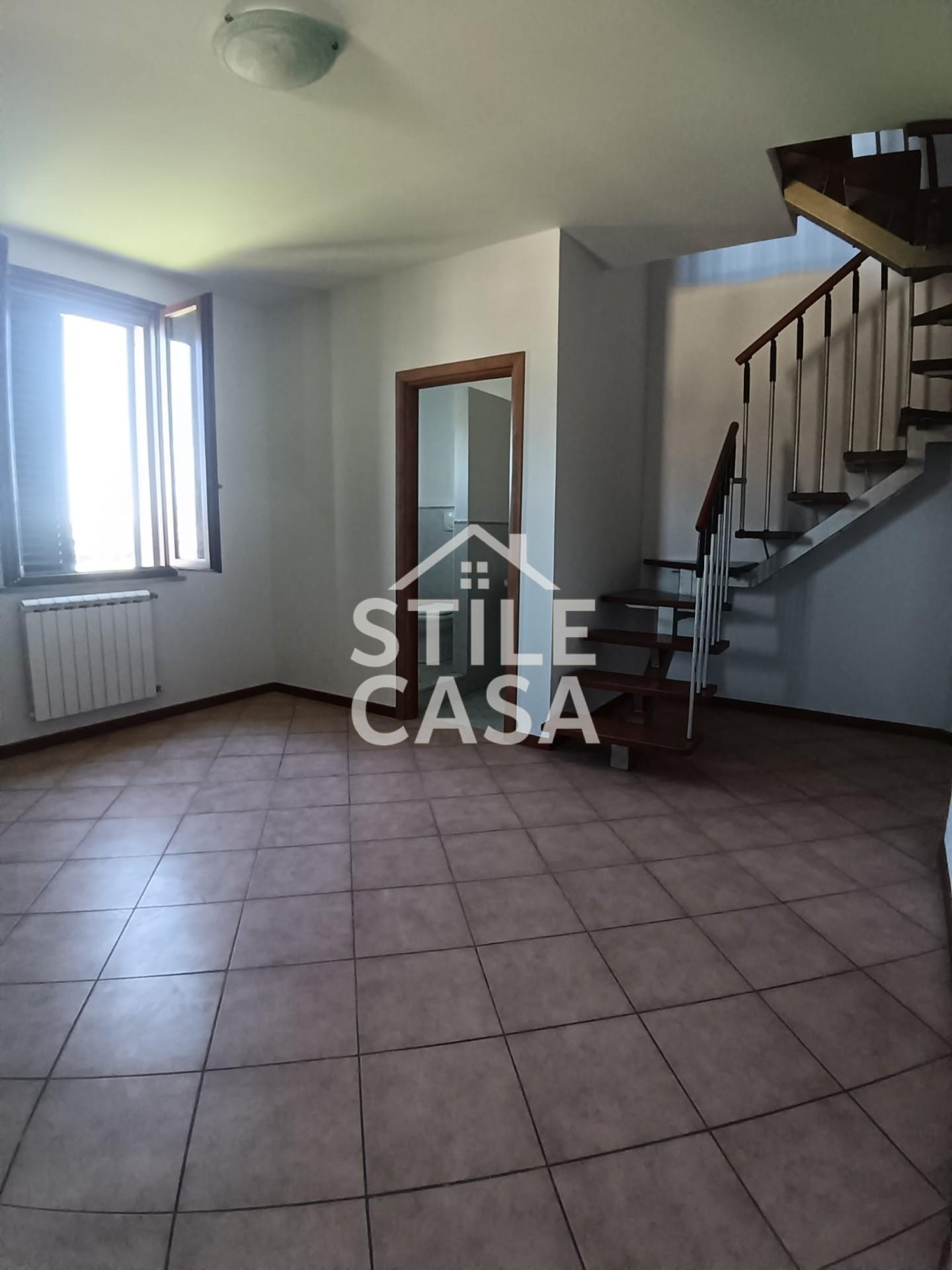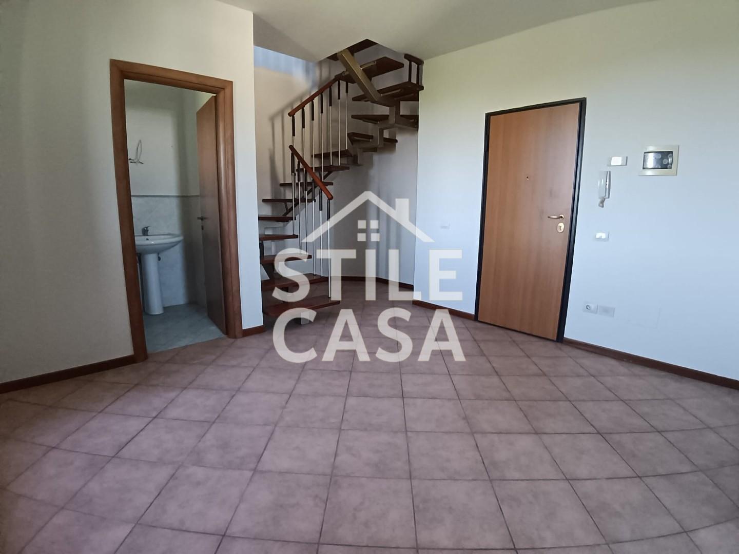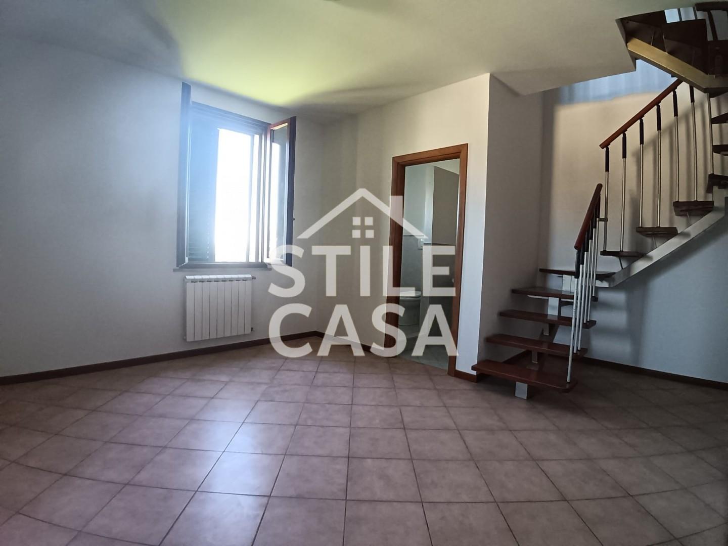 L'ingresso si apre su un accogliente soggiorno, valorizzato da una pratica nicchia utilizzabile come guardaroba e un primo bagno di cortesia finestrato con predisposizione per lavatrice; completa la zona giorno un cucinotto, funzionale e ben organizzato, arricchito da un comodo soppalco, ideale come dispensa o spazio di servizio. Tramite una suggestiva scala in legno a vista si accede al primo livello, dove si sviluppa la zona notte: qui troviamo una camera matrimoniale e un bagno finestrato con doccia.