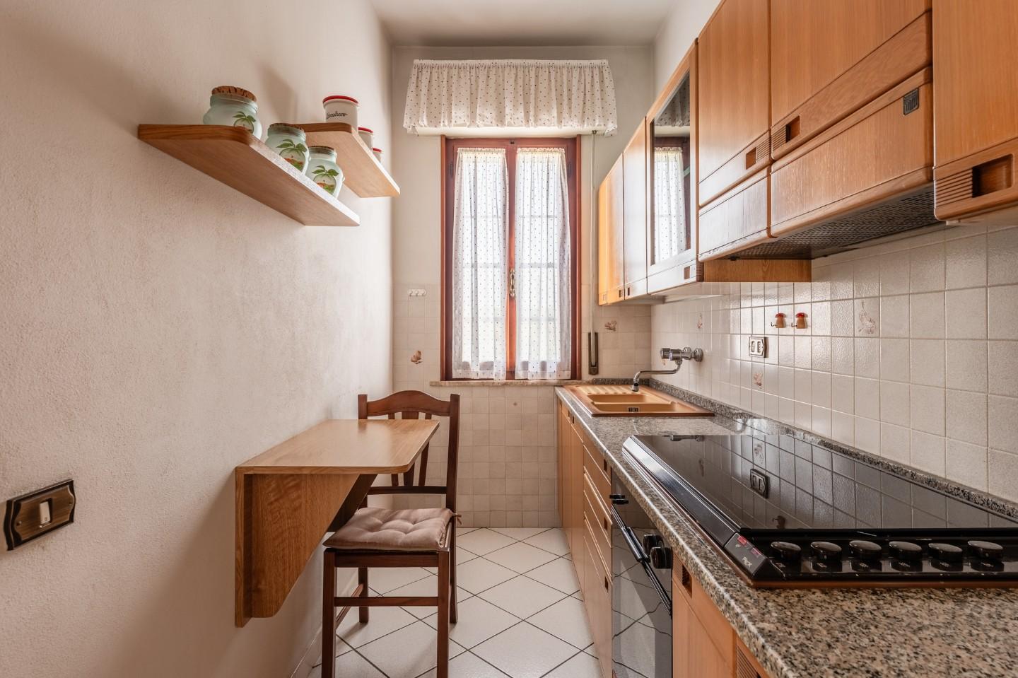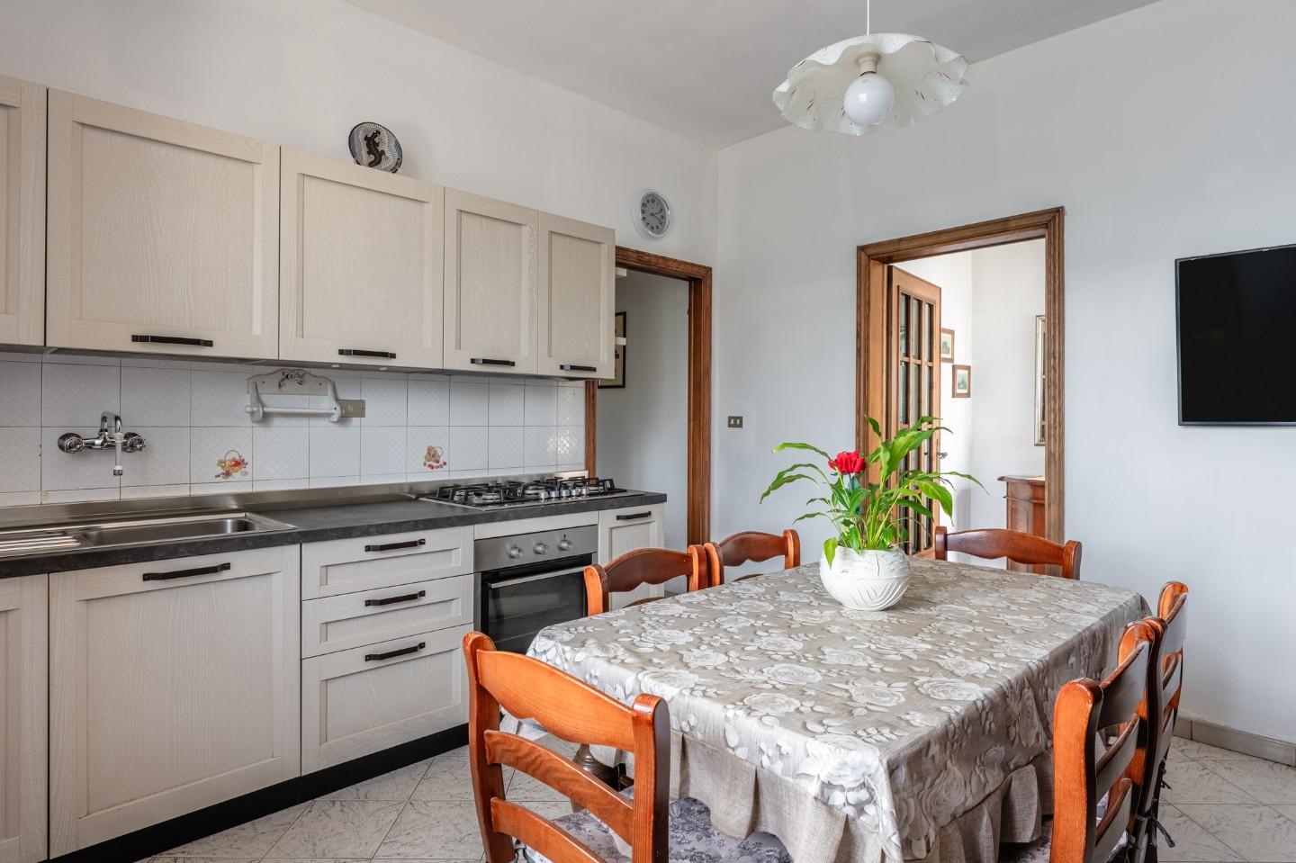 Ingresso tradizionale, sala, tinello-pranzo, cucinotto, disimpegno notte, 2 camere matrimoniali, cameretta, ripostiglio finestrato e bagno.